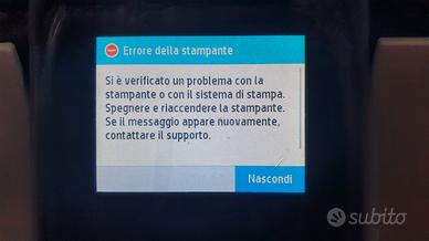 Come da titolo stampante multifunzione (scanner, fax, stampante, copiatrice) a getto di inchiostro. Ha funzionato perfettamente fino a ieri poi è apparso il messaggio di errore stampante. Si accende e fa la diagnosi ma poi funziona solo lo scanner. Non so se sia un problema software o di hardware. Per chi sa come ripararla o per pezzi di ricambio la vendo per mancanza di tempo per occuparmene. Cartucce ancora inserite e comprendo 1 cartuccia magenta nuova ancora sigillata 912XL dal valore di 20 euro. Non spedisco solo ritiro a mano.