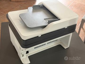 Vendo stampante HP Laser MFP 137fnw con stampe in B/N. Si tratta di un dispositivo "4 in 1" con scanner, copiatrice e fax integrati, modulo ADF da 40 fogli e un piccolo display monocromatico a 2 righe di testo con stampe ad una velocità di circa 20 copie/minuto. Non ha il fronte/retro automatico ma è possibile utilizzare l'apposita funzione del driver per stampare manualmente su entrambe le facciate del foglio. Le possibilità di collegamento offerte sono la porta ethernet LAN, il Wi-Fi e il collegamento diretto attraverso un cavo USB. Funzionante e pronta all'uso, nessun problema di nessun genere, toner al 90%, avendone ricevuto una a colori questa non viene più utilizzata. dimensioni prodotto: 40,6 cm di larghezza, 36 cm di profondità e 30,9 cm di altezza.