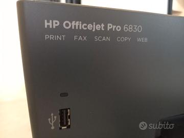 Stampante a getto d'inchiostro HP 6830 usata; multifunzione: stampa, scansiona, copia e invia fax, in vendita completa di 3 cartucce a colori XL e una Nera XL usate poco. Non funzionante perchè presenta un problema per la testina di stampa che volendo potrebbe essere riparata. Vendo a soli 50€ perché non la utilizzo più. Ideale per casa e ufficio, per chi ha bisogno di una stampante/scanner affidabile previa riparazione, oppure per chi ha la necessità di utilizzare i pezzi di ricambio