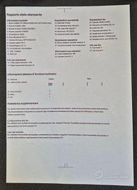 multifunzione HP OfficeJet 3830 (stampa, scanner, copia e fax). È stata utilizzata esclusivamente per scopi casalinghi e universitari e, come dimostra il rapporto ufficiale in foto, ha lavorato pochissimo, solo 1358 pagine totali. È praticamente a inizio vita.. La stampante è compatibile con qualunque sistema operativo e dispositivo. Che tu abbia un PC Windows, un Mac, un iPhone o uno smartphone Android, la configurazione è immediata: