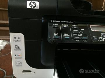 Stampante HP Officejet 6500 wireless a getto d’inchiostro, con funzioni di Fotocopiatrice, Stampante, Scanner e Fax. N. 4 cartucce colore (nero, ciano, magenta,giallo).