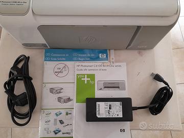 Stampante HP Photosmart C4180 All in One (Stampante - Scanner - Copiatrice) in buono stato (vedi foto) e funzionante, utilizza due cartucce (nero & ticromia) reperibili in qualsiasi negozio di PC e su internet (attualmente sulla stampante non sono presenti le cartucce). La vendo compresa del suo cavo di alimentazione e libretto istruzioni completo.