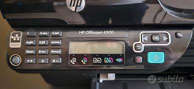 Leggere bene!!! Stampante HP Officejet 4500 nera, Model G510g, HP Ink 901. La stampante è funzionante ma spesso compare sul display "Problema con cartucce di stampa Nero, per la risoluzione dei problemi fare riferimento alla documentazione della periferica". e quando compare non stampa. Ora, se chi la acquista la conosce può risolvere il problema senza perdere troppo tempo, a volte basta spegnerla e riaccenderla per stampare oppure aprire e chiudere lo sportello delle cartucce per resettare l anomalia. La stampante viene venduta ad un prezzo irrisorio.