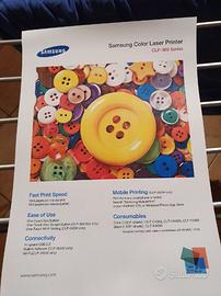 Vendo stampante laser a colori Samsung 365 usata per soli 4 mesi, per cambio a stampante superiore. Ottimo prodotto per la casa e per piccolo ufficio. In allegato aggiungo foto dello stato attuale