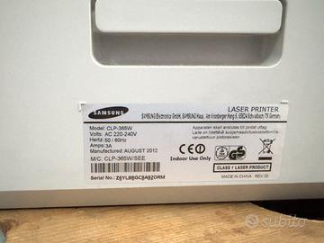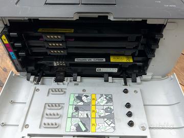 La stampante stampa regolarmente sia in bianco/nero che a colori. ⚠️ Cartucce quasi esaurite, da sostituire a breve. Ideale per uso domestico o ufficio leggero. ⸻ Condizioni * Funzionante * Buone condizioni generali * Presenti normali segni di utilizzo (graffi sulla parte superiore visibili in foto) * Cassetto carta e meccanica in ordine ⸻ Caratteristiche * Modello: Samsung CLP-365W * Tecnologia: Laser a colori * Connessione: WiFi * Formato: A4 * Stampa wireless da PC e smartphone