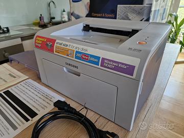Come da titolo, stampante laser compatta marca Samsung in perfette condizioni estetiche. Testata su PC con Windows 10, funziona senza bisogno di installare alcun driver. Ho stampato diverse pagine di prova per verificarne il funzionamento, che potete vedere nelle foto. Completa di cavo di alimentazione, cavo USB, scatola originale e manuale. Verrà spedita accuratamente imballata nel pluriball onde evitare danneggiamenti. Eventuale ritiro a mano a Bologna zona Villaggio Due Madonne oppure a Castel Guelfo zona Outlet. Per ulteriori domande non esitate a contattarmi!
