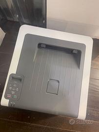 Stampante laser a colori con wifi e cavo. I toner colorati sono in esaurimento mentre quello nero è a metà.