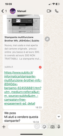 Stampante multifunzione Brother MFC J6940DW, nuova mai usata. Mai aperta dal cartone originale. Online il prezzo più basso è a Euro 390, io svendo a Euro 290.
