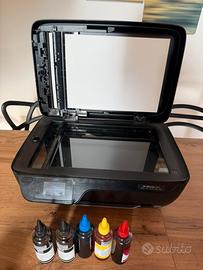 Stampante multifunzione HP 3833, usata pochissimo, perfettamente funzionante. Compreso nel prezzo inchiostro nero e tricolor, piu kit per ricaricare le cartucce.