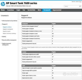 Stampante all-in-one a colori HP Smart Tank 7605, praticamente nuova in quanto ha stampato solo 42 pagine e prodotto 38 copie (verificabile dai rapporti di utilizzo della stampante). Inchiostri completamente pieni. Stampa, copia, scansione, fax, ADF, wireless e ethernet. Utilizza inchiostro liquido ricaricabile ed è per questo la più conveniente sul mercato. Con una ricarica di nero originale da 15 Euro stampa 8000 pagine! Solo consegna a mano.