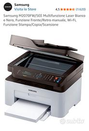 Prezzo da nuova: 270€. Vendesi per cambio ufficio Stampante multifunzione Samsung Xpress M2070FW, usata e in ottime condizioni, perfettamente funzionante. Ideale per casa o ufficio, questa stampante laser monocromatica offre stampa, scansione, copia e fax in un unico dispositivo compatto. Garantisce stampe veloci e di qualità professionale, con connessione Wi-Fi, USB ed Ethernet per la massima comodità. Caratteristiche principali: - Stampa laser in bianco e nero nitida e veloce - Funzioni: stampa, scanner, copia e fax - Connettività wireless (Wi-Fi) + USB - Compatibile con stampa da smartphone - Design compatto, salva spazio La stampante è stata utilizzata con cura, sempre tenuta in ambiente domestico, senza difetti. Pronta all’uso.