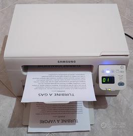 Vendo stampante laser Samsung SCX3405W con a bordo un toner al 99%, la stampante si connette al router ed è possibile stampare da qualsiasi dispositivo. Cedo questa stampante compatta e versatile adatta sia per un ambiente domestico sia per un ufficio. Questa stampante è dotata anche di uno scanner molto utile per effettuare delle semplici copie. La stampante è perfetta sia per quanto riguarda la parte esterna sia per quanto riguarda la meccanica. Non mi ha mai dato nessun tipo di problema. Nelle foto dell' annuncio ho inserito anche una foto dove mostre il corretto funzionamento della stampante e una foto in cui mostro il livello del toner (99%) e il numero esatto delle stampe fatte dalla stampante (2.389 su 30.000). In omaggio viene fornito il cavo di alimentazione. Un punto forte di questa stampante, oltre ad occupare poco spazio, è il costo del toner, che si aggira intorno ai 12 euro.