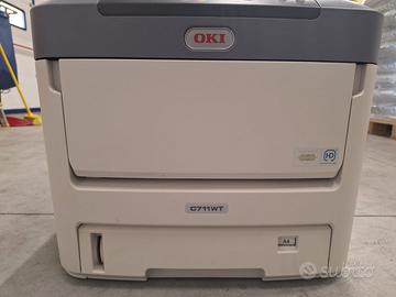 Stampante a LED a colori che si distingue per l'aggiunta del toner bianco, che consente di stampare a colori e in bianco su una vasta gamma di materiali, inclusi i trasferibili a caldo.