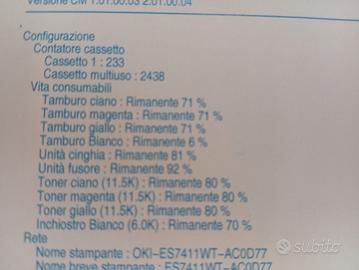 Stampante OKI laser con tricromia + inchiostro bianco per realizzazione transfer su tessuti chiari e scuri.