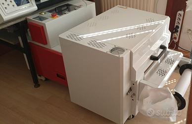 Stampante dtf da 30 cm, colori CMYKW e due colori fluo, 2 testine di stampa, una per il colore e una per il bianco, compreso di forno (che non ho mai usato) e computer di collegamento. Visti il peso e le dimensioni non spedisco, solo ritiro a mano