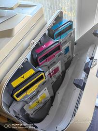 Posso spedire ma devo organizzare spedizione di persona perché subito fa massimo 20 Kili di peso e stampante ha circa 30.Stampante usa inchiostro a tanica di grandi dimensioni.Uso inchiostro da circa 2 anni e non e ancora finito.Quello nero e quasi finito ma si può stampare ancora ancora minimo 1000 fogli invece quello a colori c e di più.Guarda bene ultima foto