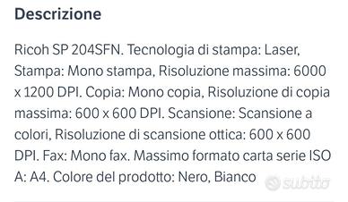 Scheda tecnica:Fax LASER RICOH SP 204SF