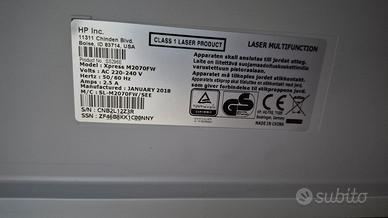 stampante samsung m2070fw laser monocromatica in bianco e nero multifunzione connessione wi-fi, nfc,usb perfettamente funzionante paragonabile al nuovo con 264 tra stampe e fotocopie effettuate. toner all'interno 84% cavo alimentazione e cavo usb in dotazione. verrà inviato un video del funzionamento onde evitare equivoci successivamente con tanto di data e ora della vostra etichetta di acquisto. in caso di spedizione si utilizza bollicine da imballaggio cartone di quelli duri e nastro adesivo per pacchi tutto molto accurato.