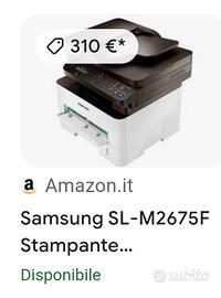 stampante multifunzione Samsung in ottime condizioni modello SL-M2675F, stampante con cavi perfettamente funzionante stampante laser mocromatica con scanner per fotocopie e fax ottima per uffici o per lavoro da casa (nuova su Amazon sta 310€ come poteva vedere nell’ultima foto selezionata)