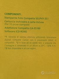 Vendo stampante CANON SELPHY ES1 senza cartuccia ne carta ma con il suo imballo originale, il cd e le istruzioni. SOLO PROVATA. CONSEGNA A MANO IN ZONA GARDENIA A REGGIO EMILIA