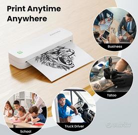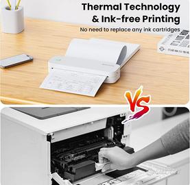 ByteCintia Stampante Portatile, D80 Stampante Termica A4 Compatibile con IPhone via Bluetooth, Windows e macOS via Cavo USB, Stampante Inkless per Viaggi, Lavoro, Casa, Stampa Solo su Carta Termica