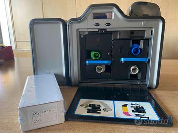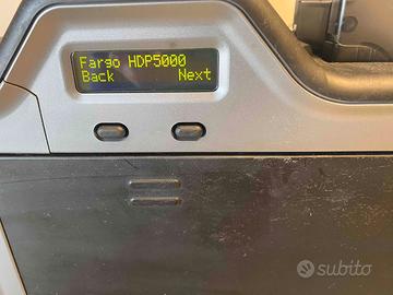 Stampante re-transfer, fronte-retro FARGO HDP5000, per realizzare badge identificativi e card associative. Porta di collegamento USB ed Ethernet. A bordo un nastro a colori e un film con autonomia residua di circa 250 stampe, e una confezione nuova di card neutre bianche. Carenatura con leggere imperfezioni come da foto. FUNZIONANTE. Driver e manuale scaricabili dal sito del produttore. Gestisco la spedizione con " Tutto Subito"