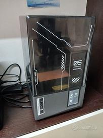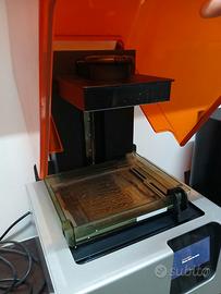 Stampanti digitali usate da odontotecnici. Solo l'ultima nera non è funzionante per una perdita di resina.