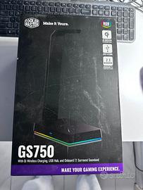 Cooler Master GS750 Supporto Cuffie Carica Qi - Caricabatterie Wireless Cuffie e Dispositivi Mobili, Ingresso/Uscita Audio 3.5mm e Audio Surround 7.1, Dual Hub USB 3.0, Illuminazione RGB