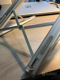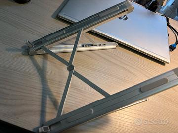 Vendo stand per pc portatile fino a 15 pollici, con altezza regolabile e richiudibile per essere trasportato. In alluminio, prodotto di ottima qualità.