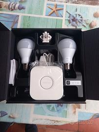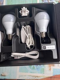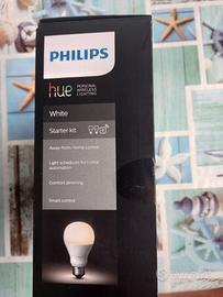 starter kit white,include 2 lampadine led philips da 9,5w pari a 806 lumen di resa,durata circa 25000 ore,attacco E27,include 1 hue bridge,il kit è compatibile con Amazon Alexa,Apple Home kit e google assistant per il controllo vocale,disponibile per app hue philps gratuita,hue bridge è il cervello che permette di controllare fino a 50 luci e accessori