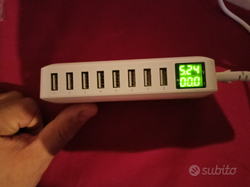 Stazione di ricarica USB Spina per caricabatterie a 8 porte con display LCD Monitor 40W 8A Caricatore da parete USB portatile da tavolo per smartphone, tablet, powerbank e altro.