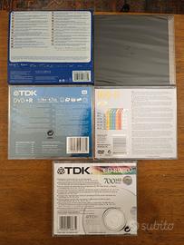 Stock di supporti ottici vergini ancora sigillati. Include dischi riscrivibili (RW) e registrabili di marche storiche. Ottimi per backup dati o per autoradio vintage