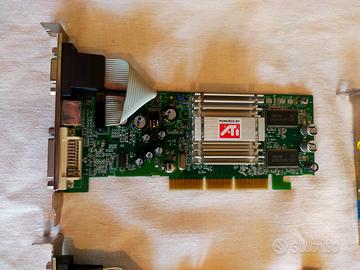 Offro uno stock di 7 schede video su bus AGP 8x, funzionanti: - Una ATI Radeon 9200, RAM 128 MB DDR, bus a 128 bit, uscite DVI, S-Video, VGA. - Tre ATI Radeon 9200 SE, RAM 128 MB DDR, uscite DVI, S-Video, VGA. - Una GIGABYTE GV-R92S128T, (basata sulla GPU ATI Radeon 9200 SE), RAM 128 MB DDR, uscite VGA, S-Video, Composite RCA. - Una GeForce2MX 400 VER.G, RAM 64 MB SDR, bus a 128 bit, uscite VGA e video out. - Una MSI MS-8936 NVIDIA GeForce MX 4000, RAM 64MB, uscite S-Video e VGA. Spedisco con Subito, o ritiro a mano in Torino.