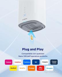 - Router WiFi 6 Dual Band AX3000 Potente con SIM 5G: Grazie alla tecnologia WiFi 6 (802.11ax) e alla compatibilità con SIM 5G, questo router 5G con SIM offre una velocità combinata di 574 Mbps su 2.4 GHz e 2402 Mbps su 5 GHz, ideale per video 4K, gaming online e smart working senza interruzioni.