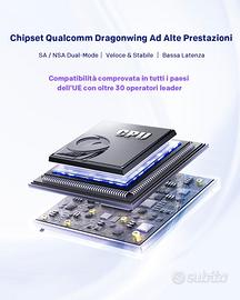 - Modem 5G SIM ad Alte Prestazioni con Chipset Qualcomm Dragonwing: Supporta reti 5G SA/NSA dual-mode e tutte le bande 5G europee, è compatibile con reti 4G LTE e conforme allo standard 3GPP R16. Questo modem 5G con SIM assicura connettività ultraveloce e stabile con qualsiasi operatore europeo.