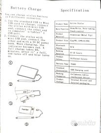 = Prodotto nuovo = Penna stylus per tablet e smartphone. Peso ultra leggero: solo 30g, compatta 18 cm. Design ergonomico tipo matita. Struttura in metallo. Fino 20 ore di autonomia.