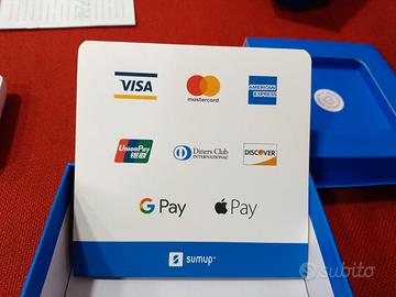 Vendo POS SUMUP AIR lettore di carte di credito portatile, accetta i pagamenti di tutte le carte di credito inclusa american express. Usato pochissimo come Nuovo e completo di confezione ed accessori Costo trattabile