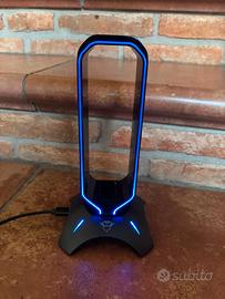 Supporto per cuffie Trust GXT 265 Cintar RGB con led di diversi colori.