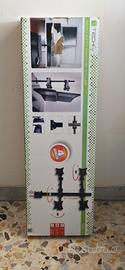 Braccio supporto da scrivania per 1-2-3-4 monitor, bracciale regolabile e fissaggio con morsetto,i monitor possono roteare in orizzontale che in verticale, passaggio cavi, attacchi inclinabili di +/-90° rotabile 180°, perfetto stato completo di scatola