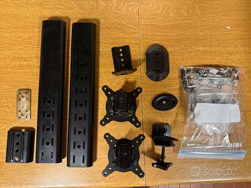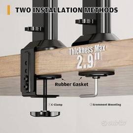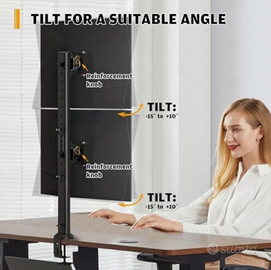 l supporto monitor da scrivania regolabile offre un'inclinazione da -15° a +10°, una rotazione da -50° a +50°, una rotazione di 360° e una regolazione dell'altezza a 4 livelli lungo il tubo centrale. Il supporto doppio monitor può essere posizionato in formato verticale o orizzontale, consentendo di trovare l'angolo di visione più adatto alle proprie esigenze.
