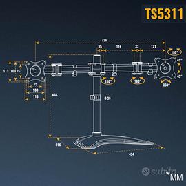 Possibilità di inclinare gli schermi attraverso i due bracci.
