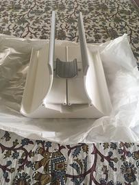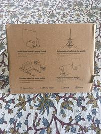Supporto Stand multifunzione per notebook colore bianco, prodotto nuovo. Le foto con lo stand scuro sono solo a scopo illustrativo per le varie modalità di utilizzo. I punti di appoggio sono in gomma.
