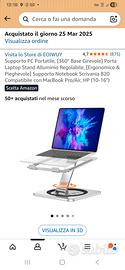 Vendo per inutilizzo Supporto PC Portatile, [360° Base Girevole] Porta Laptop Stand Alluminio Regolabile, [Ergonomico & Pieghevole] Supporto Notebook Scrivania B20 Compatibile con MacBook Pro/Air, HP (10-16").