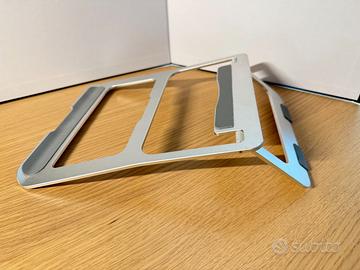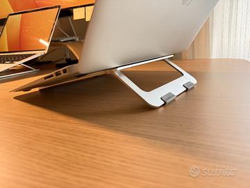 Supporto per PC Portatile - alluminio - molto leggero, comodo da portare nello zaino - altezza fissa - 21 cm x 23 cm - la posizione inclinata della tastiera è più riposante per i polsi e il collo.