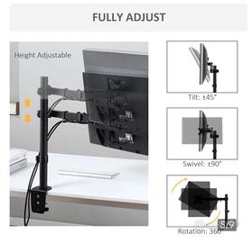 Vinsetto Supporto Monitor da 13-32'' per Scrivania con Altezza, Inclinazione e Orientamento Regolabili, Nero