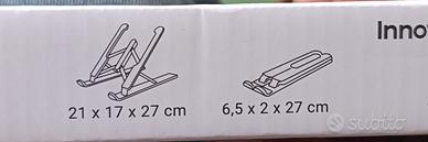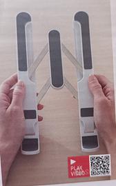 Un versatile e adattabile supporto pieghevole per PC portatile con superficie di appoggio antiscivolo, estensibile e regolabile in altezza e larghezza. Fornisce una presa salda e la sua struttura aperta permette la dissipazione del calore, evitando il surriscaldamento del dispositivo. Ha 8 livelli di inclinazione (20-45°) ed è adatto anche ad altri dispositivi (da 10" a 17"), come tablet, e-book o cellulari, e può anche essere usato come leggio per libri. Ideale per lavorare a casa o in ufficio migliorando l'ergonomia della postazione di lavoro. Questo robusto e originale supporto multiposizione è molto leggero e facile da usare e piegare, e include una borsa da trasporto per proteggerlo e portarlo comodamente ovunque.