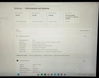 Vendo Microsoft Surface Pro 8 in configurazione i5 11ª gen, 8GB RAM, SSD 256GB, Windows 11 Home.