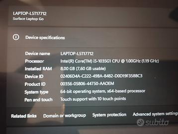 Microsoft Surface Laptop Go 128gb (problema schermo)