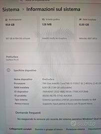 - Surface Pro 8 - processore: i5 11tg generazione - ram: 8 Gb - SSD: 1 terabyte (effettuato upgrade SSD) + SSD originale da 256 Gb in dock Beikel - Surface Dial - 2 touch pen: Slim pen + surface pen - tastiera in alcantara grigio (nuova 2 mesi di uso) - 1 caricabatterie - scatola surface originale Condizioni più che buone, solo qualche segno da uso. Nessun graffio visibile sullo schermo. Pochissimi segni per uso sulla scocca. Prezzo trattabile con moderazione