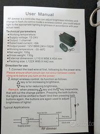 Comando a distanza per luci, usato in campeggio, ottimo! funziona a 12V da remoto. Ottimo per strisce a led in casa!
